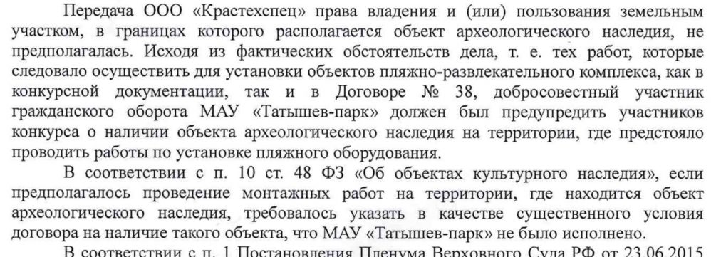 Кстати, расследователями также обнаружилась интересная связь руководства «Татышев-парка» и верхушки местных силовиков… Но обвинили в нарушении археологического слоя все равно юристку коммерческой компании, которая просто сопровождала выигранный на открытых торгах конкурс. Чудны дела твои, Господи!