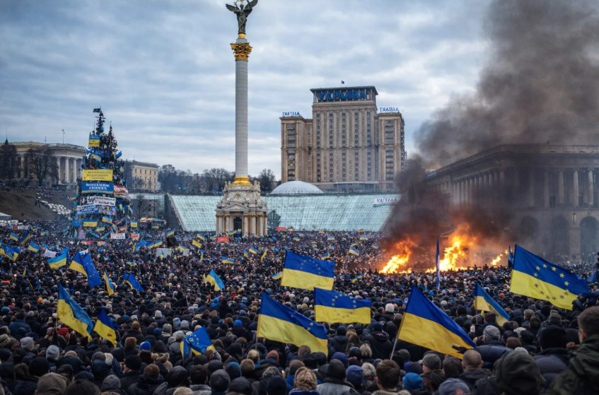 Однако победа Януковича показывала и то, что решительного перелома в настроениях не произошло по сравнению с 2004 годом, более того, прозападный лагерь не может выставить фигуру, сопоставимую с ним по популярности. Это и послужило причиной Евромайдана 2013-2014, суть которого - в силовом захвате власти, насильственном отстранении конкурентов, желательно, раз и навсегда.