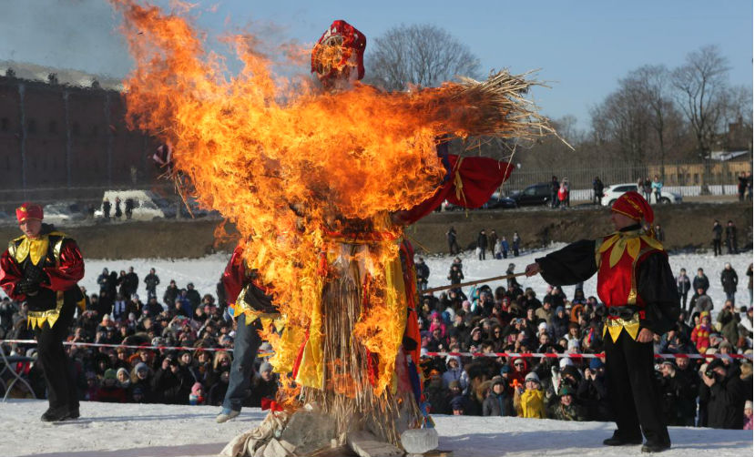 Сегодня кульминация всей масленичной недели. В конце праздника торжественно сжигают чучело Масленицы.