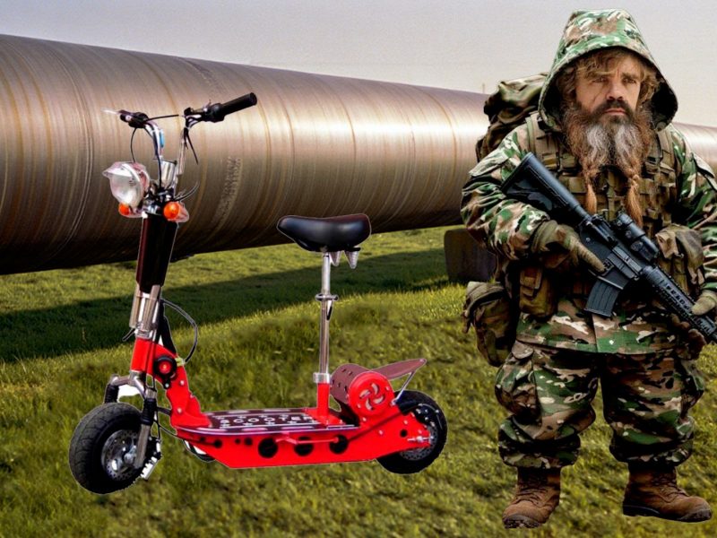 Картина, правда, жуткая, достойная быть экранизированной в стиле фэнтэзи. Карликов сюда приплели, потому что в трубе, диаметром 1,4 метра бойцам было крайне тяжело физически идти согнувшись 15 км под Суджей. А «карликам» в 1,4 м трубе – гуляй конём! Правда пройти им надо будет не 15 км, а несколько сотен километров, если врезаться из самой ближайшей точке, где-то в Беларуссии. Но для этого больное воображение автора может придумать боевые самокаты для карликов-диверсантов. Кстати, очень перспективная кинематографичная идея: Саурон обратил гномов и малоросликов против жителей Средиземья в фильме «Властелин трубы»!