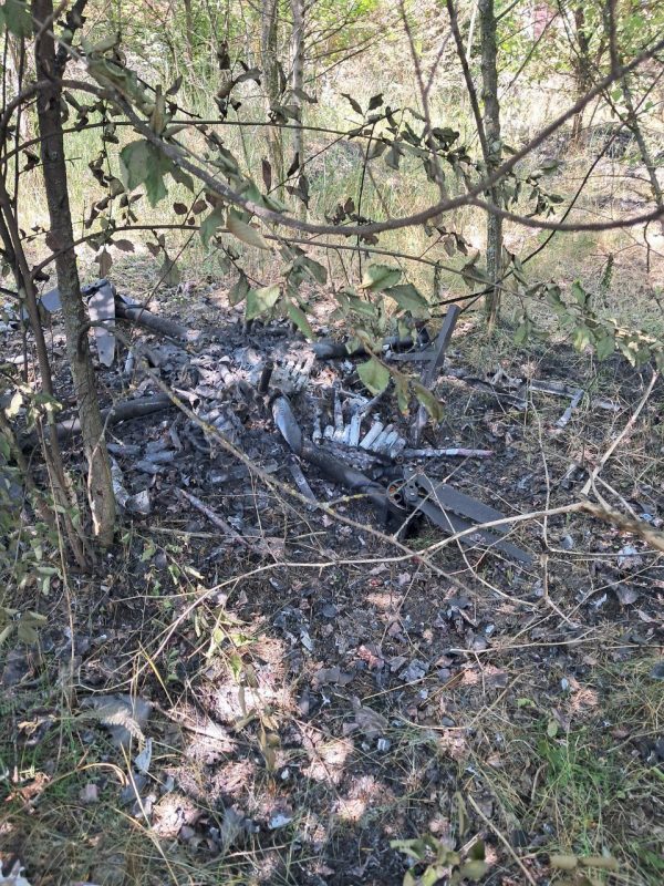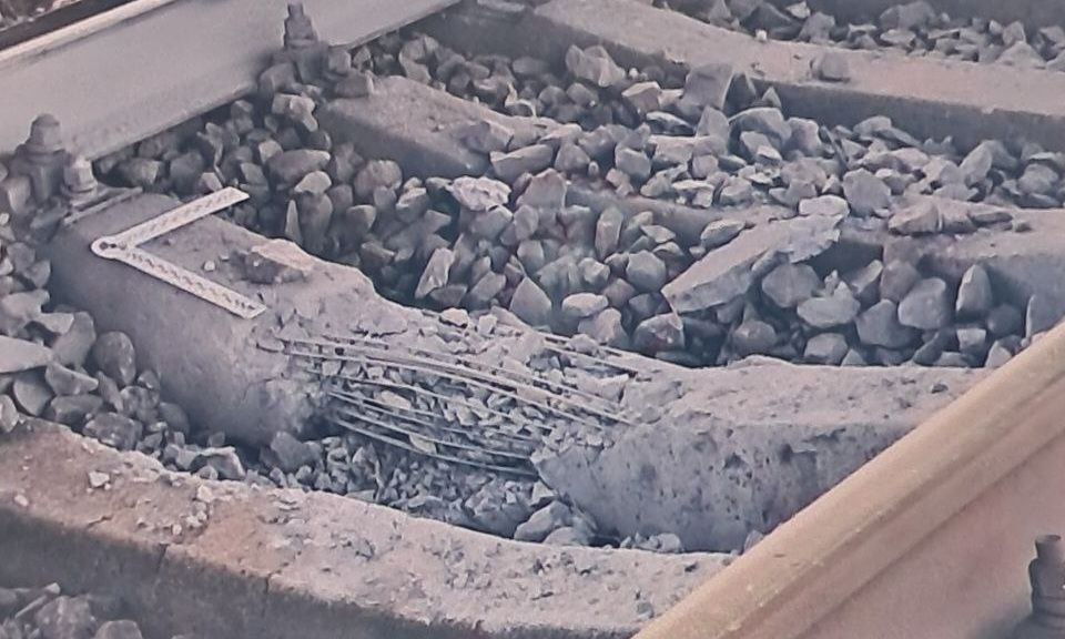 «На одном из участков ж/д-полотна виден след неудачной попытки подрыва. Чуть дальше - сгоревшая трава от сбитого и воспламенившегося после падения тяжелого ударного дрона типа «Баба Яга», — пояснил он.