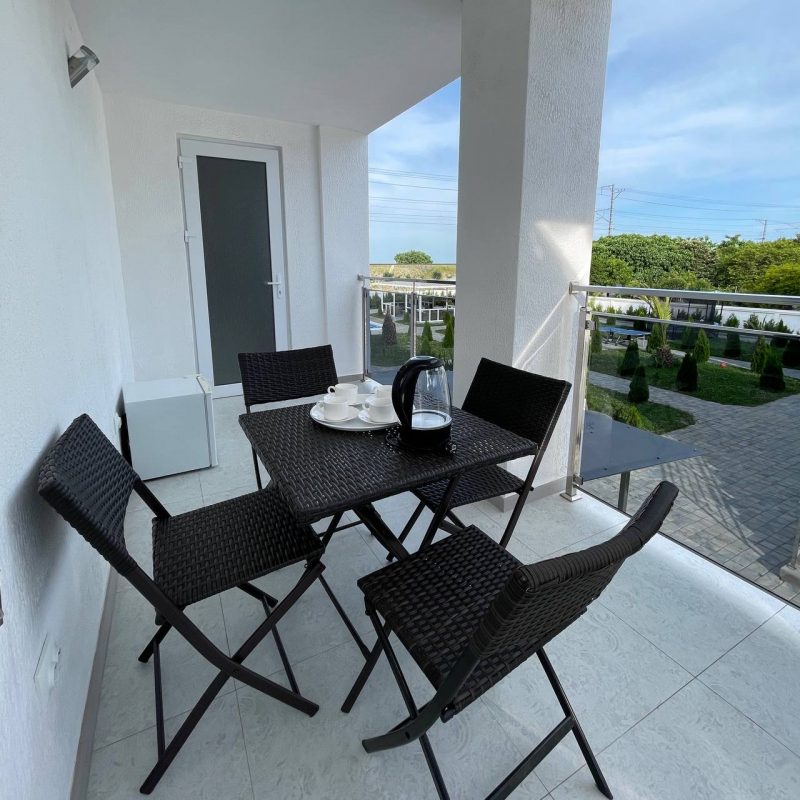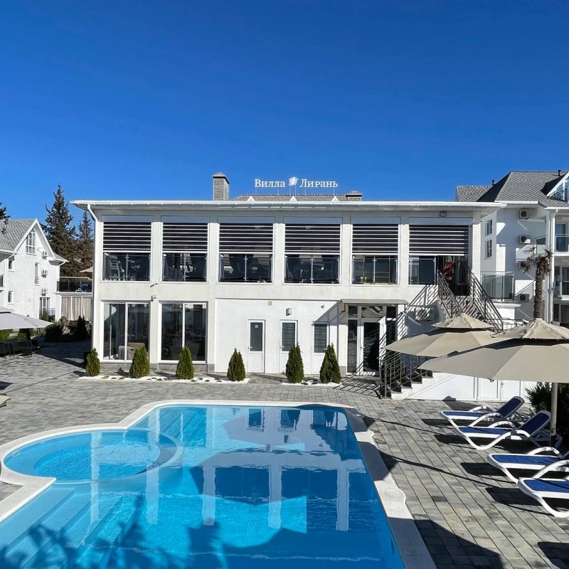 Уютные номера, два бассейна, кафе, столовая на территории, детская и спортивная площадки, зоны отдыха, беседки, зона барбекю, широкая береговая полоса, чистое море, оборудованный пляж «Лирань»