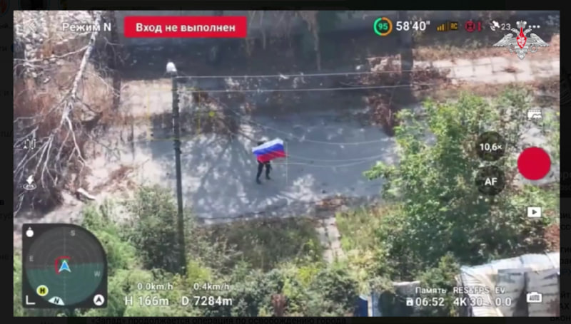 По словам Подоляки, на видео солдат с флагом стоит на узкой улочке, скрытой от площади, вместо того чтобы выйти на центр города, как обычно делают при демонстрации контроля. Эксперт отмечает, что в подобных роликах обычно участвует группа бойцов, которые уверенно позируют, улыбаются и машут — чего здесь нет.