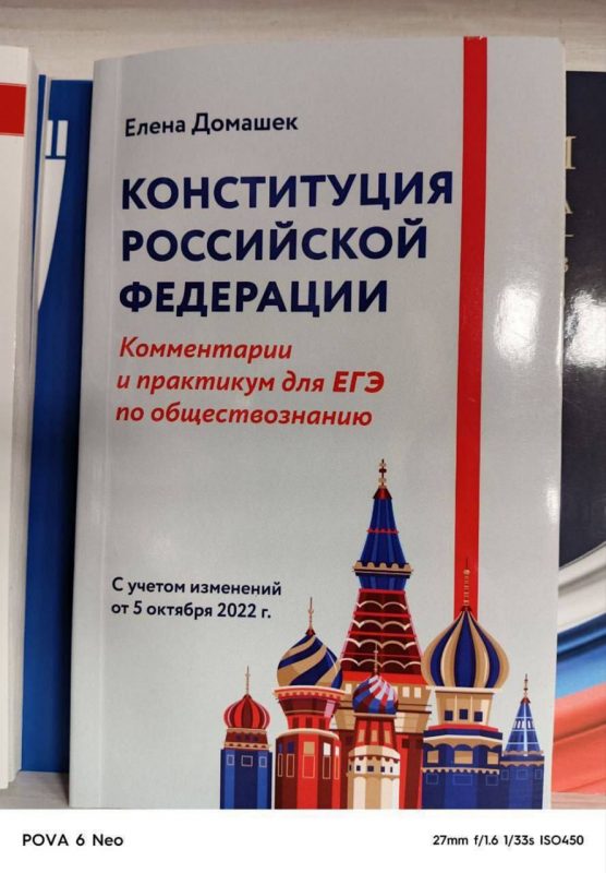 Весна 2025 года: на обложке школьного издания Конституции РФ, изданного «Фениксом», с куполов стилизованного собора Василия Блаженного исчезли кресты. Вместо них — странные абстрактные фигуры, похожие на детские игрушки.