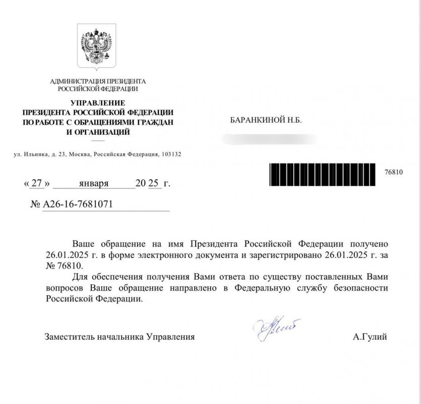 Безусловно, мы не подменяем собой следственные органы и никого ни в чём не обвиняем. Однако доводы, изложенные в обращении к Президенту, подтверждаются множеством прямых и косвенных доказательств. У нас пока что нет причин сомневаться в их достоверности. Кроме того, вряд ли виновные люди стали бы писать письма ко всем руководителям федеральных правоохранительных ведомств с просьбой публично разобраться в этом деле.