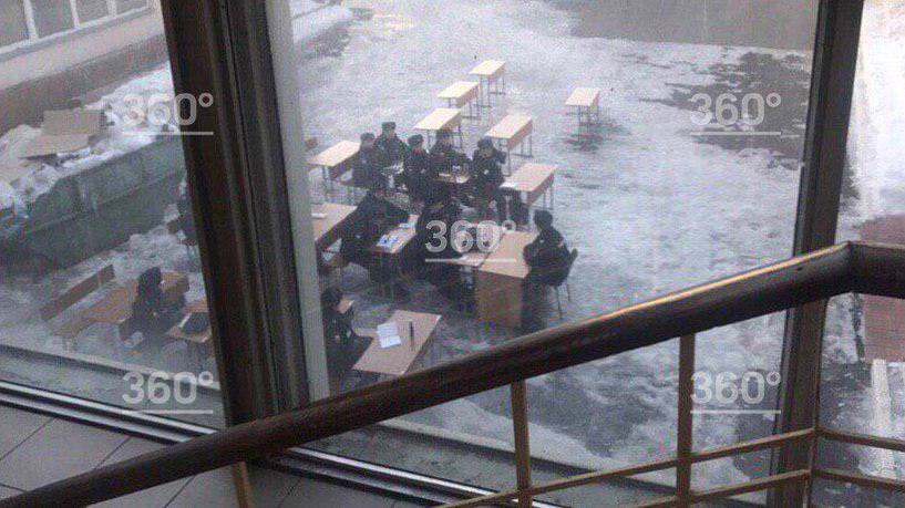 Студентов Московского университета МВД России имени В. Я. Кикотя вывели на улицу. Перед зданием им поставили парты для учебы, совсем как если бы они стояли в обычном классе. Фотографии с занятий на морозе опубликовал сегодня телеканал 360.
