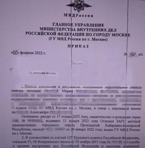 Как сообщает Телеграм-канал BAZA, на основе поданных документов и рапорта в МВД издали приказ, согласно которому майор Мария официально стала майором Александром. Однако радоваться трансгендеру пришлось недолго.