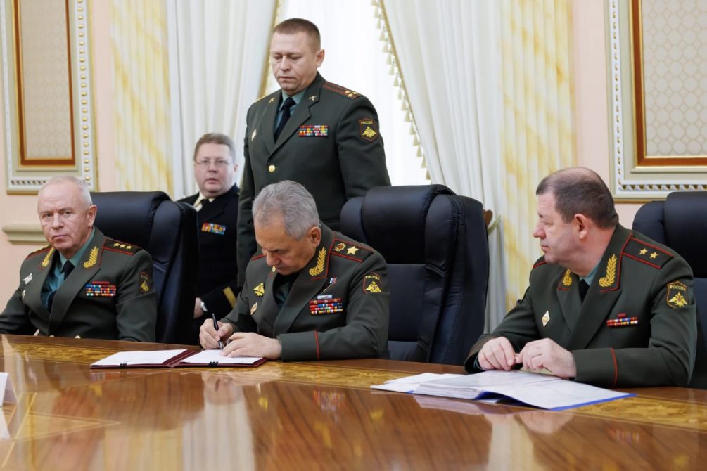 В ходе встречи в Астане министры обороны России и Кыргызстана, Сергей Шойгу и Бактыбек Бекболотов, подписали два межведомственных соглашения: одно касается «Об информационном обмене», а другое - «О взаимодействии в области выявления и оценки радиационной, химической и биологической обстановки».