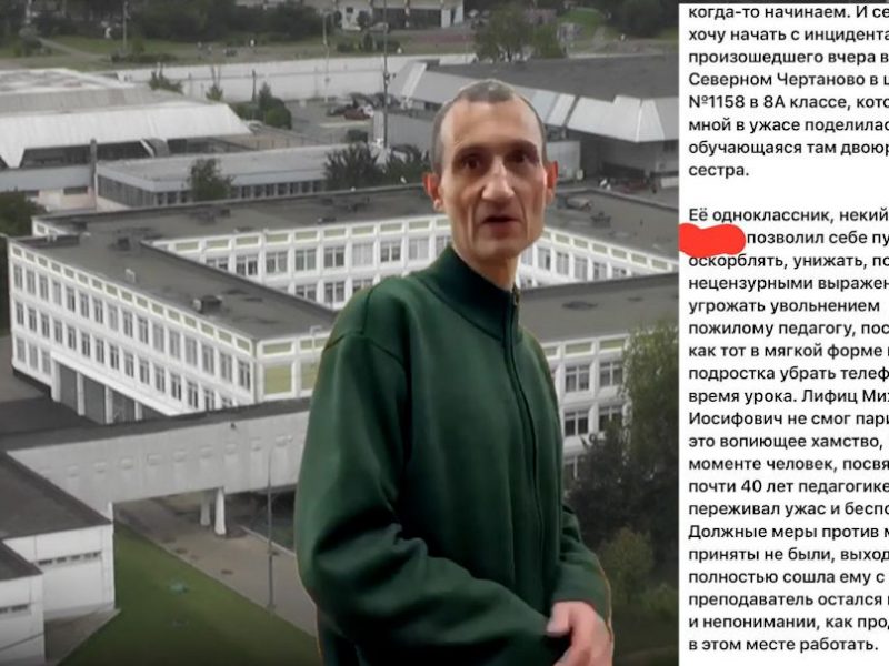 Блогер Сергей Колясников написал, что на видео школа №1158, Москва, Чертаново. А педагог - 61-летний учитель иностранных языков Михаил Иосифович Лифиц.