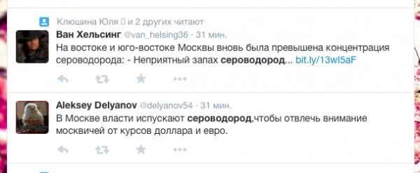 По сообщению пользователей социальной сети Twitter, в Москве вновь ощущается неприятный запах сероводорода.