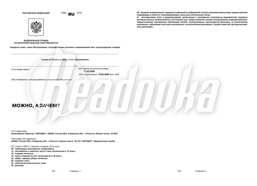 Информацию о регистрации товарного знака нашел портал Readovka в официальном бюллетене Роспатента.