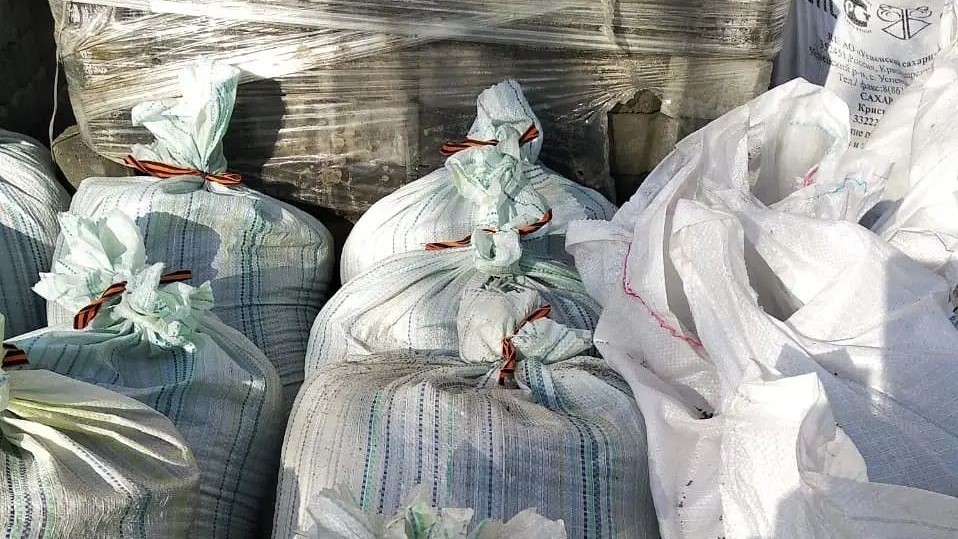 Мешками с Георгиевской лентой заинтересовались местные общественники. Они приехали на место строительных работ и вызвали на место наряд полиции. Служители правопорядка составили протокол и начали проверку.