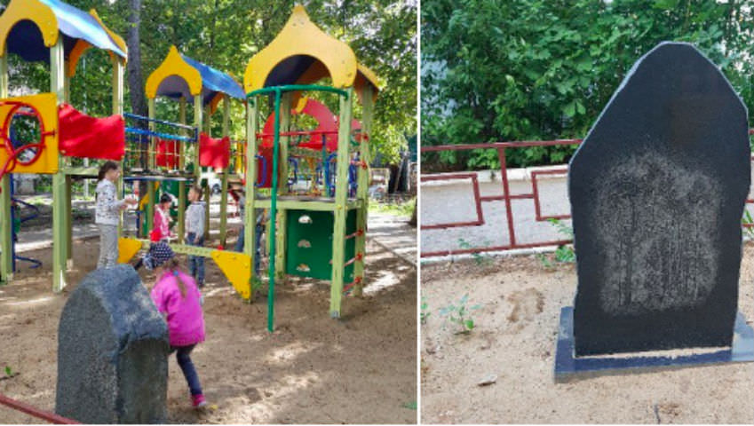 Необычный объект обнаружили на детской площадке в самом центре Самары. Могильная плита в окружении скамеек, качелек, ярких домиков. Рядом с памятником вовсю резвится детвора. Фотографию с этим странным объектом разместила на своей странице в Twitter Татьяна Пятнашка (@etg_63).