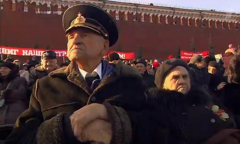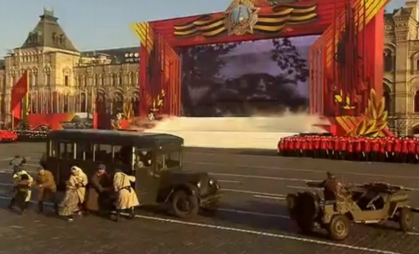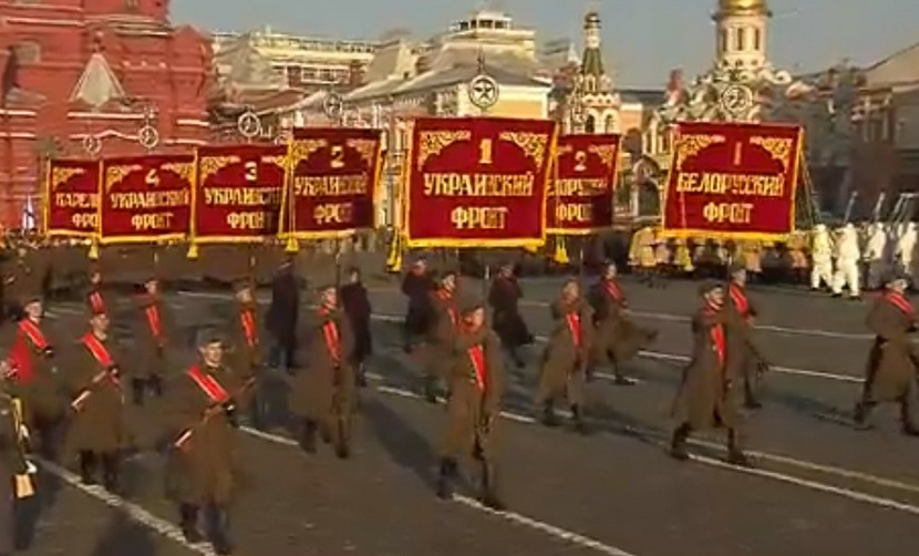 Праздник в честь легендарного парада 7 ноября 1941 года прошел на Красной площади в Москве. Театрализованную часть мероприятия открыли взрослые и дети в ушанках и телогрейках, которые выбежали провожать защитников столицы от фашистских захватчиков. Под песню из фильма «Белорусский вокзал» в исполнении Дениса Майданова по площади прошагал «десятый десантный батальон» в зимнем камуфляже. Сам Майданов также был одет в военную форму 40-х годов - в шинель и папаху.