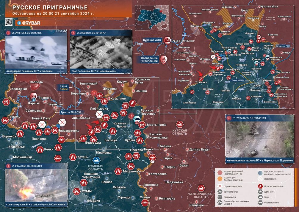 Боевая авиация ВКС России также активно действует в Кореневском районе, нанося удары по украинским позициям в Ольговке и лесном массиве около Кремяного. Кроме того, российские силы успешно пресекли попытку контратаки ВСУ в западной части Любимовки.