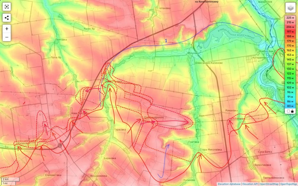 Вооружённые силы РФ совершили рывок со стороны Александрополя по высотам к н.п. Заря и вышли к его окраинам.