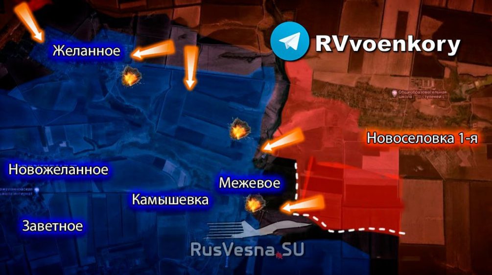 Российские войска окружают группировку ВСУ в Желанном, прорываясь к Покровску. Об этом пишет Телеграм-канал «Военкоры русской весны».