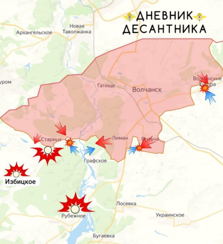 Наиболее напряженная ситуация сохраняется на Волчанском участке Харьковского направления. Продолжаются бои в районах населенных пунктов Лиман, Вильча, Волчанские хутора и по направлению к Графскому.
