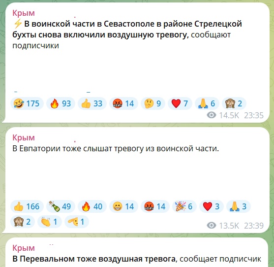 «Все мы знаем, как противник привязан к датам и любит наносить ракетные удары к нашим праздничным дням. Завтра 12 июня День России. С большой вероятностью ВСУ захотят испортить нам праздник. Сегодня ночью и весь завтрашний день Крым и Севастополь особое внимание. Не игнорируйте тревоги», - призывают крымчан в соцсетях.