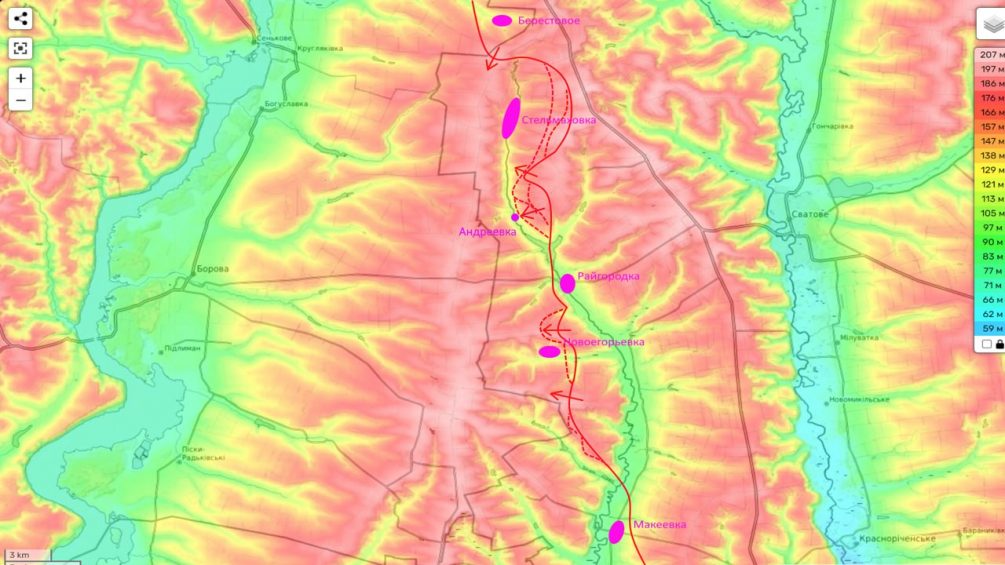 «В первую очередь у нас успехи южнее этого села. Сегодня наши штурмовики закончили «сбрасывать» противника с высот в районе Андреевки. Теперь ВС РФ пытаются закрепиться на холмах», - уточнил он.