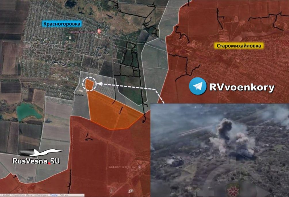 Как уточнил военный эксперт Борис Рожин, из населённого пункта пришли хорошие новости. Наши войска полностью заняли дачный поселок в Красногоровке и продвигаются дальше.