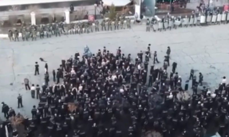 Следственный комитет опубликовал видео с последствиями бунта в колонии в Иркутской области. На кадрах, которые сняты с дрона, видна толпа заключенных, окруженых сотрудниками спецподрезделений в защитном обмундировании и с щитами. Затем показана территория колонии с дымящимися после пожара постройками.