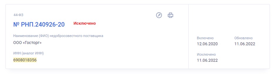 Конвейер по наполнению Реестра недобросовестных поставщиков