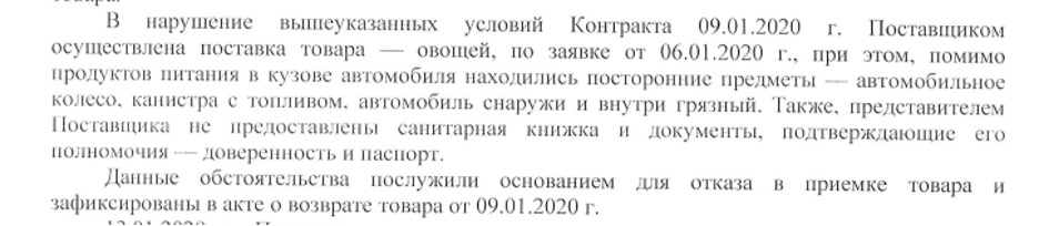 Причиной включения компании в РНП стало заявление главврача Конаковского специализированного Дома ребенка для детей с органическим поражением центральной нервной системы с нарушением психики. Из заявления следует, что выигравший контракт на поставку фруктов детям «Госторг» многократно срывал поставки. Как минимум 5 раз компания просто не привозила необходимые продукты.