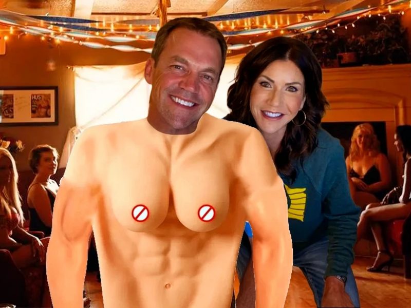 По данным Daily Mail, супруг министра США Брайон Ноэм платил порно-актрисам, которые закачивают большие объёмы физраствора себе в грудь, за разговоры, в которых признавался им в вожделении к «большим, огромным, абсурдным сисям». Но, если бы Брайон ограничился только этим, то, наверное, американское общество простило бы ему эту «шалость».