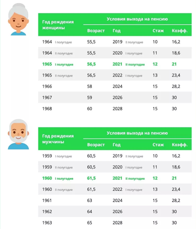 Соответственно, женщины с учетом переходного периода могут выйти на пенсию в 56,5 года, а мужчины — в 61,5 года.