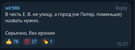 Аналогичного мнения придерживаются и подписчики Telegram-канала WAGNER GROUP. Они отмечают, что народная поддержка Евгения Пригожина широка, и миллионы тех, кто ценит его вклад в защиту Родины, согласны с необходимостью увековечивания его памяти.