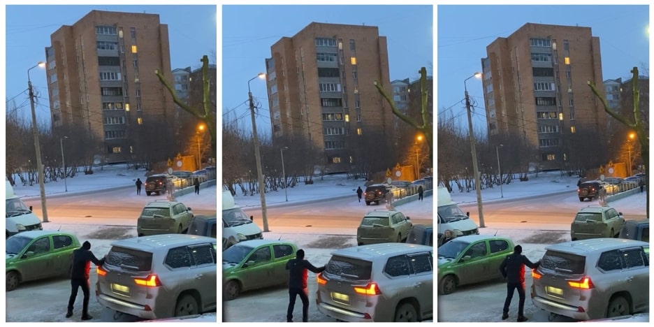 Из видеозаписи становится очевидным, что она просто откровенно и нагло врет. Двое нападавших уже убежали и были от ее авто на расстоянии примерно 45-55 метров, когда она только-только остановила свою машину. Она при всем желании даже бегом не смогла бы догнать тех мужчин, не то что «подойти» к ним, никак не могла с ними поговорить. И «перепутать» такое она тоже не могла. Получается, это тоже стопроцентно заведомо ложные показания? Статья 307 УК РФ.