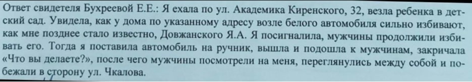 А как же свидетельница со стороны Довжанского, которая своим криком буквально спасла его от смерти посреди улицы?