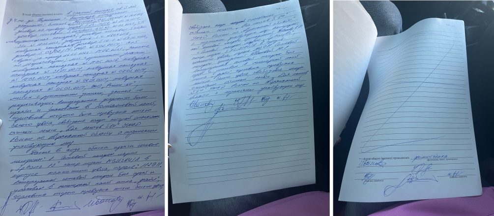 11.04.2023 г. супруга Иванова Кирилла, вместе с его защитником по приглашению следователя Белогривцева К.Н., прибыла в СУ СК РФ по Астраханской области. Зайдя к нему в кабинет, увидела следователя Белогривцева К.Н., конвой в составе трех человек, мужа в наручниках и свидетеля по делу Лазарева Дениса, который требовал Иванова Кирилла оговорить себя, дать показания против Евдокимова Николая, за что гарантировал ему свободу незамедлительно, в противном случае грозился длительным арестом. Лазарев Денис объяснял свое требование тем, что таким образом Иванов Кирилл сможет уйти от наказания, а если не получится, утверждал, что, так как он бывший начальник Астраханского УЭБиП он сможет договориться и со следствием, и с прокуратурой, и с судом и вообще обойтись штрафом, как он сам несколько лет назад, когда его задержали при получении взятки с подчиненного. Следователь тоже не бездействовал, он оказывал давление, он торопил с принятием решения, он молчал, наблюдая за происходящим.