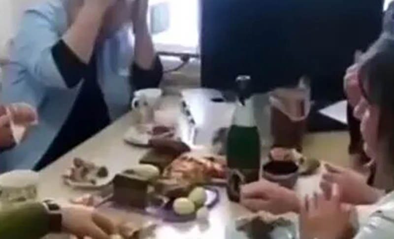 Ранее в интернете было опубликовано видео, на котором запечатлено, как родительница ребенка, у которого, по ее словам, температура тела была 39 градусов, заходит в кабинет, где врачи пьют шампанское и едят торт.