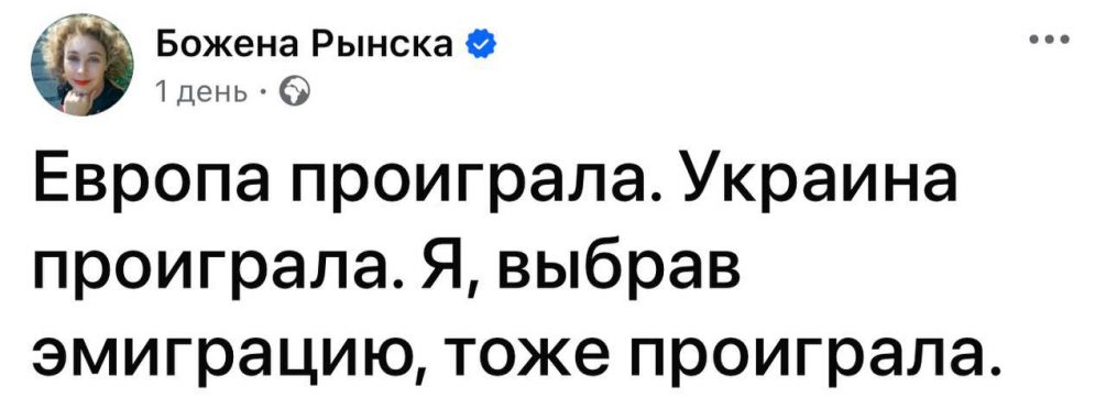 «Европа проиграла, Украина проиграла. Выбрав эмиграцию, я тоже проиграла».