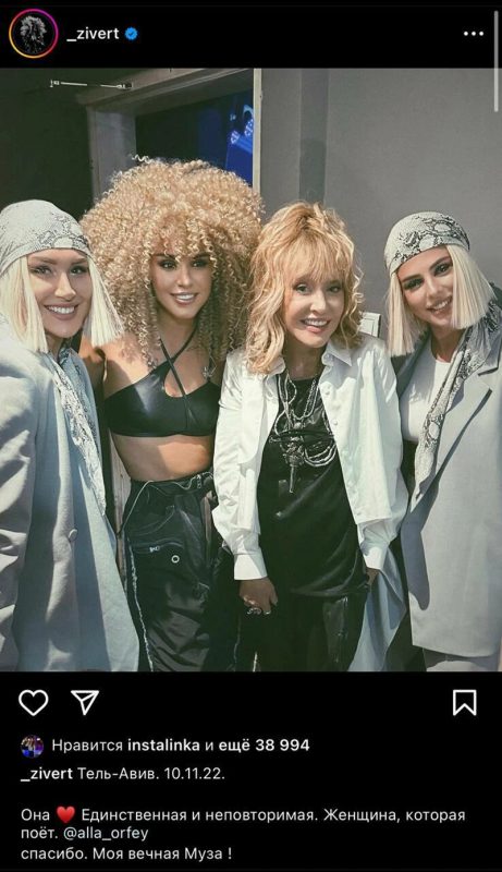 Как оказалось, выступать певица перестала на тот момент только в России. В 2023 году в Израиле благополучно прошел концерт Юлии, который по традиции посетила и нынешняя самая известная гражданка «земли обетованной» Алла Пугачева. Алла Борисовна поддержала решение и позицию Юлии Зиверт в отношении происходящего в мире.