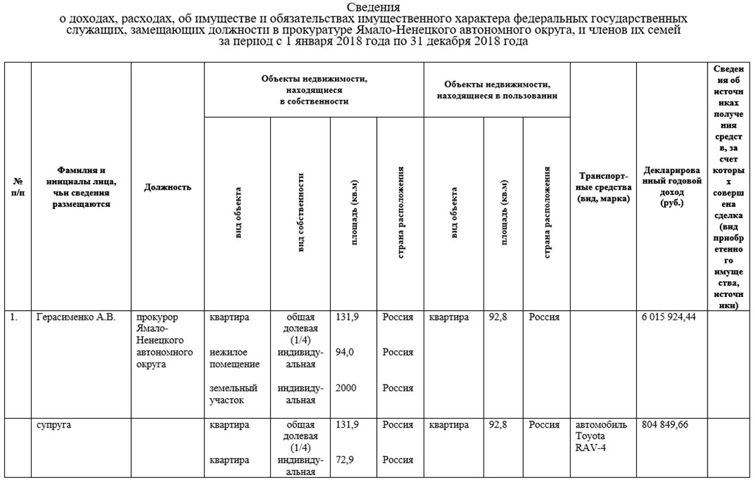 В этой связи эксперты пророчат скорейшую отставку Уральского транспортного прокурора Александра Герасименко. 11 с лишним лет, вплоть до декабря 2019 года, он возглавлял прокуратуру Ямало-ненецкого автономного округа и за это время, по всей видимости, заслужил себе славу главного «прокурора-беспредельщика» страны. Теперь, когда, по сообщениям СМИ, в отставку подали оба его друга-покровителя в Генпрокуратуре (Некрасов и Гринь), возможно, знаменитой «крыши» у него в Москве не осталось. При этом есть подозрения на наличие у Герасименко нескольких иностранных паспортов (об этом в частных беседах сказали почти все опрошенные нами эксперты). А еще, несмотря на более чем огромную зарплату (и, похоже, огромные теневые доходы, о которых писали СМИ), по декларации у него есть только 1/4 доля квартиры, да земельный участок с каким-то нежилым помещением. Все это позволяет предположить, что уходить на пенсию в России он и не собирался, и теперь нельзя исключать, что попытается «налегке» сбежать за границу.