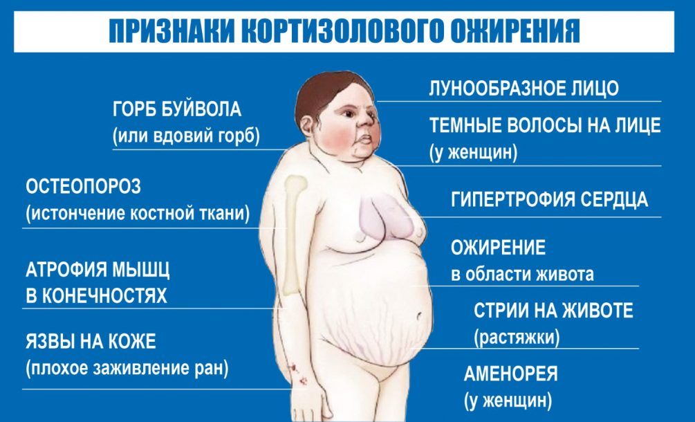 СПРАВКА. Если обычного человека с ожирением посадить на диету и заставить «пахать» в спортзале, то он обязательно похудеет. Для человека с кортизоловым ожирением такой способ не подойдет. Более того, может произойти обратный эффект, он будет чувствовать себя еще хуже, приобретет еще более высокий уровень кортизола и, соответственно, изменения с телом и лицом будут происходить быстрее.