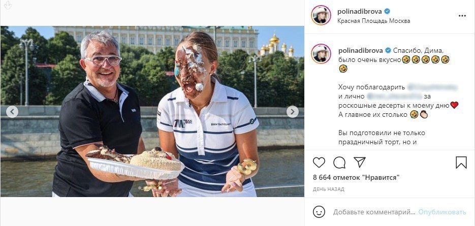 «Спасибо, Дима, было очень вкусно», - написала Полина Диброва в соцсети.