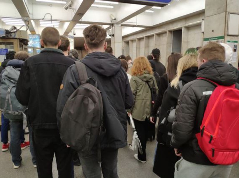 Вечером пятницы люди также подолгу были вынуждены стоять в очередях, чтобы пройти через турникеты на Чернышевской.