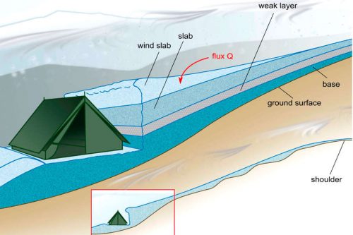 Побывав на месте трагедии ученый проанализировал состав снега и льда. Он выяснил, что на горе, где стояла палатка, была четкая стратификация плотного и рыхлого снега, а также глубинная изморозь – особый вид снега, существенно более рыхлый, чем накапливающийся сверху. В этом слое снежинки превращаются в призмочки, бокальчики, стаканчики.
