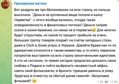В защиту Александра Владимировича Молоковских высказался и телеграм-канал «Прикамские витязи», которые регулярно публикует материалы с передовой СВО, организует сбор гуманитарной помощи.