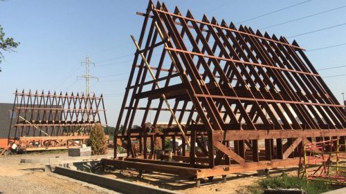 Такие строения полюбились множеству людей благодаря оригинальному внешнему виду с треугольной формой и панорамным остеклением. Жесткий каркас из строганой доски камерной сушки продлевает срок службы готового дома, сохраняя при этом прочность и легкость конструкции. Габариты строения могут быть практически любыми, а сборка занимает всего несколько месяцев.