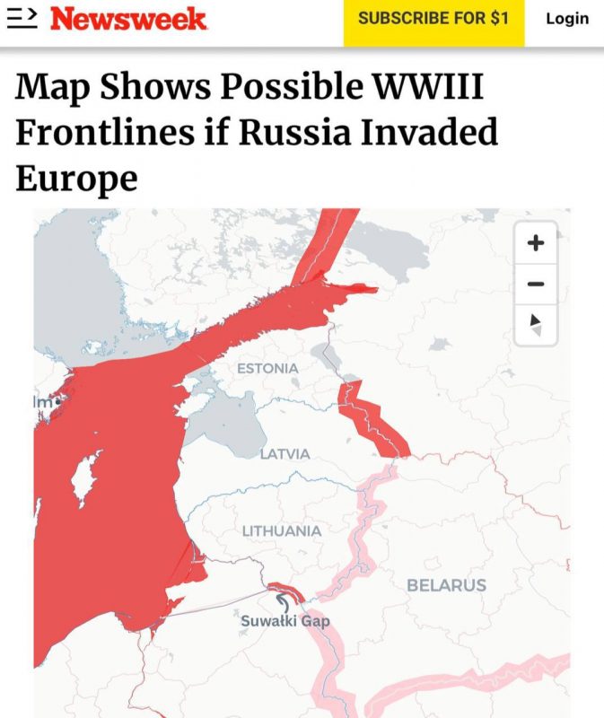 На днях издание Newsweek заявило, что в случае Третьей мировой войны столкновения начнутся прежде всего в Сувалкском коридоре. Согласно карте, фронт в случае Третьей мировой в Европе может протянуться от северной границы России с Финляндией, пройти через Эстонию, Литву, Латвию, Швецию и Польшу и закончиться у границы Германии с Данией.