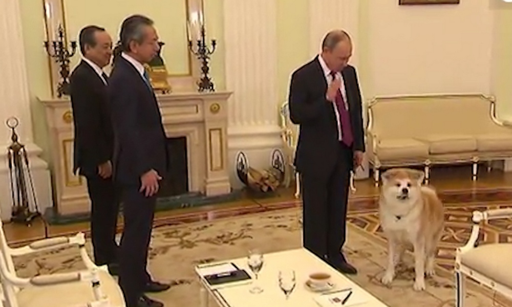 Собака президента России Владимира Путина Юмэ породы акита-ину заранее предупредила всех, находившихся в Кремле, что они в опасной близости от первого лица. Больше всего перепугались японские журналисты, которые перед встречей с Путным попросили посмотреть на собаку породы акита, которую привезли Путину в подарок из Японии четыре года назад.