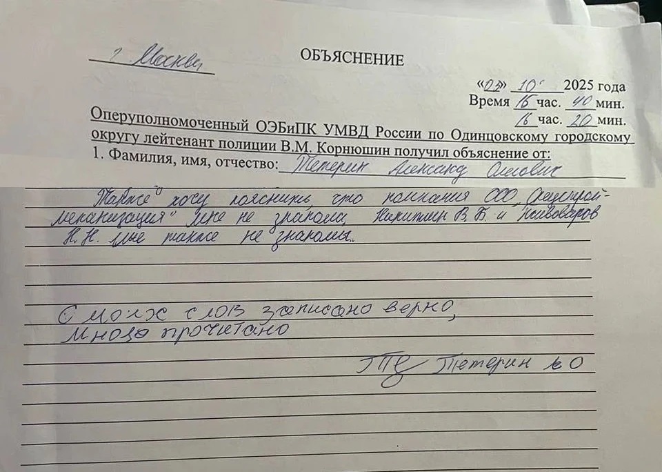 «В материалах проверки по нашему заявлению на Тетерина , поданному в декабре 2024 г. в Одинцовский ОЭБ и ПК, странным образом исчезают доказательства. Тетерина допросили летом 2025 г., и нам удалось протокол допроса сфотографировать. Но в настоящее время допроса в деле не оказалось. Доверенность на Тетерина, с помощью которой он всё, собственно, и провернул, ранее тоже была в деле. Сейчас исчезла и она. Более того, за 15 месяцев проводимой проверки в материалах до сих пор нет той самой сфальсифицированной Тетёриным отчётности, информации о дате , времени, месте получения ЭЦП Тетериным, которой подписаны отчеты, кто с 2022 г. сдает отчетность по его фирмам, не опрошен ни один работник ИФНС 22, который должен был провести нормальную камеральную проверку той отчетности. Как такое возможно без прямого участия правоохранителей?», - задается вопросом Галина Никитина.