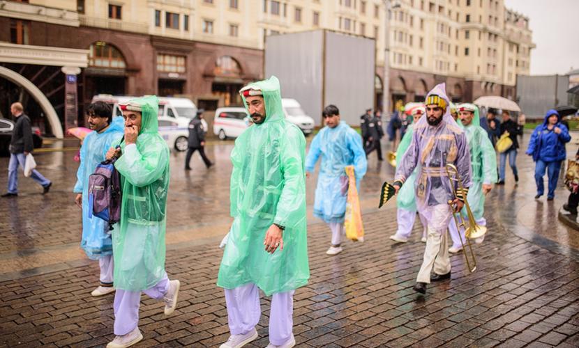 Однако проливной дождь, начавшийся с утра, испортил москвичам праздник. Несмотря на ливень, на Тверской улице состоялся обещанный парад оркестров. Впрочем, музыкантов под дождевиками увидело очень мало горожан, которые в ненастную погоду вынуждены были остаться дома.