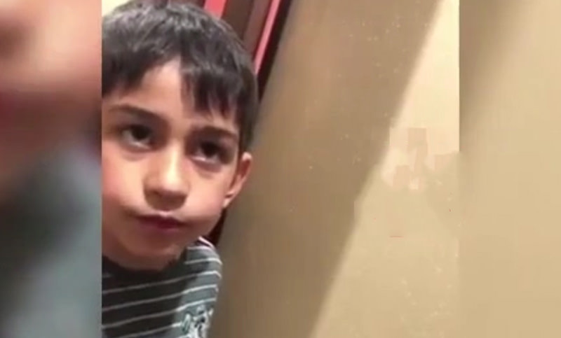 Мальчик, которому на вид около 11-12 лет не пускает старшую сестру на улицу.