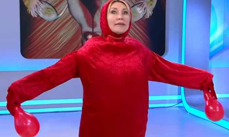 Ведущая программы «Жить здорово!» на Первом канале Елена Малышева в разговоре с радиостанцией «Говорит Москва» ответила на критику выпуска, в котором актриса в костюме женских детородных органов исполнила песню и танец.